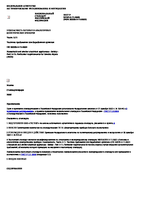 Наша цель состоит в том, чтобы предоставить вам быстрый доступ к содержанию документа Безопасность бытовых и аналогичных электрических приборов. Часть 2.11. Частные требования для барабанных сушилок.