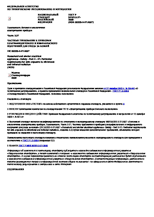 Наша цель состоит в том, чтобы предоставить вам быстрый доступ к содержанию документа Безопасность бытовых и аналогичных электрических приборов. Часть 2.27. Частные требования к приборам ультрафиолетового и инфракрас.