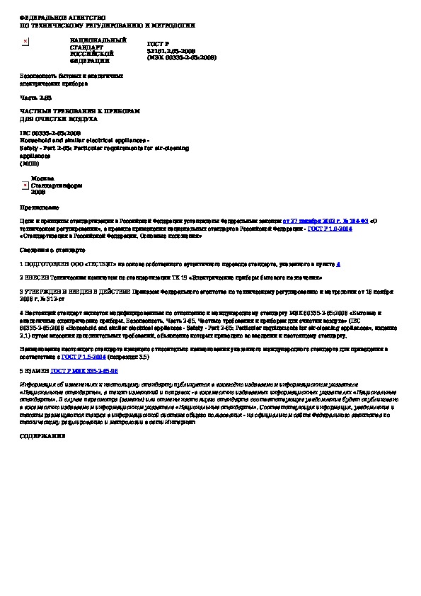 Наша цель состоит в том, чтобы предоставить вам быстрый доступ к содержанию документа Безопасность бытовых и аналогичных электрических приборов. Часть 2.65. Частные требования к приборам для очистки воздуха.