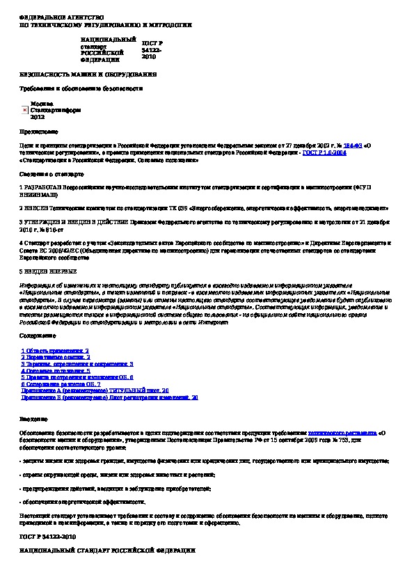 ГОСТ Р 54122-2010: Безопасность машин и оборудования. Требования к обоснованию безопасности