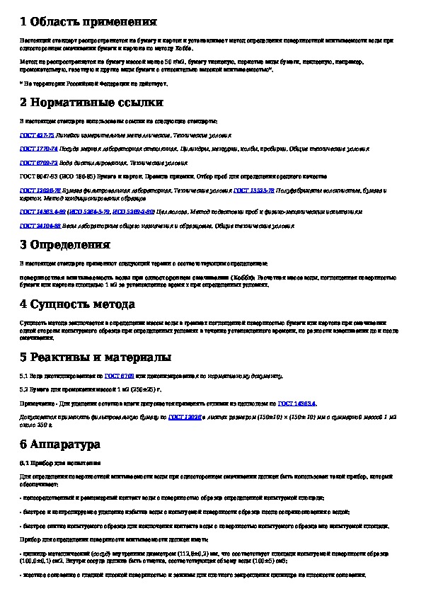 Наша цель состоит в том, чтобы предоставить вам быстрый доступ к содержанию документа Бумага и картон. Метод определения поверхностной впитываемости воды при одностороннем смачивании (метод Кобба).