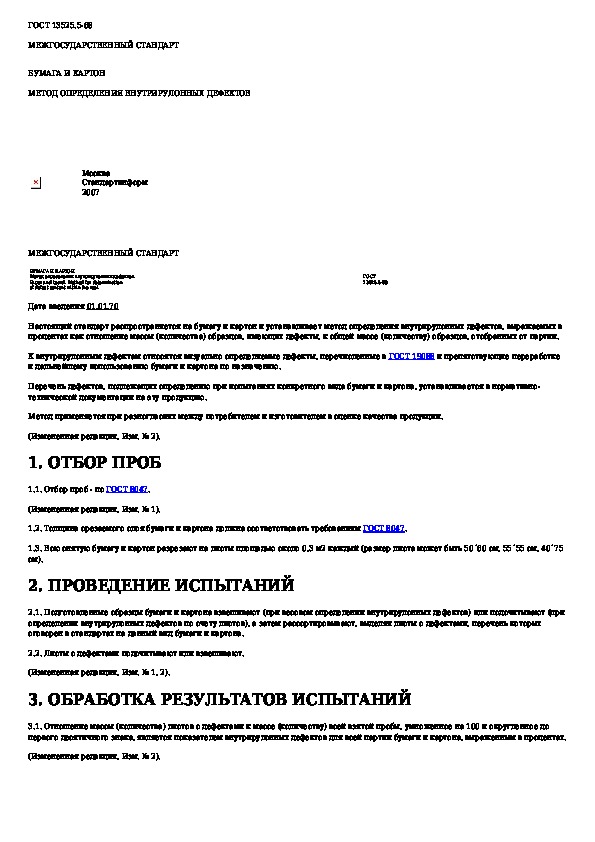 ГОСТ 13525.5-68: Бумага и картон. Метод определения внутрирулонных дефектов