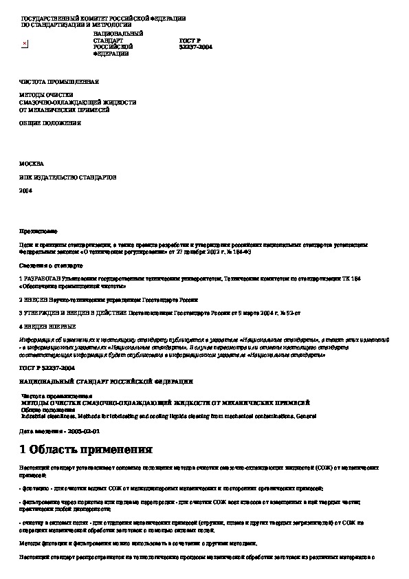 Наша цель состоит в том, чтобы предоставить вам быстрый доступ к содержанию документа Чистота промышленная. Методы очистки смазочно-охлаждающей жидкости от механических примесей. Общие положения.