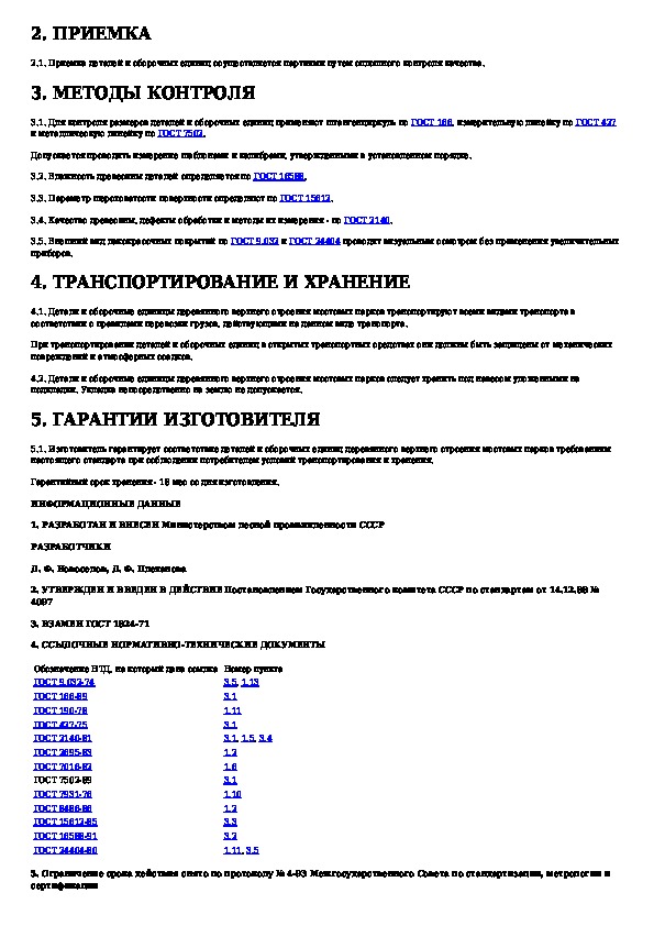 Наша цель состоит в том, чтобы предоставить вам быстрый доступ к содержанию документа Детали и сборочные единицы деревянного верхнего строения мостовых парков. Общие технические условия.