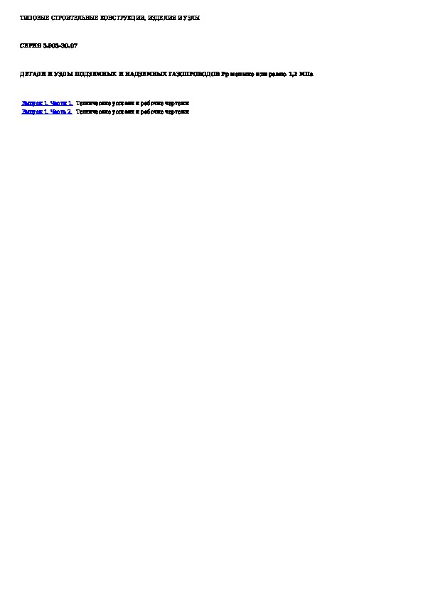Наша цель состоит в том, чтобы предоставить вам быстрый доступ к содержанию документа Детали и узлы подземных и надземных газопроводов Рр <= 1,2 МПа.