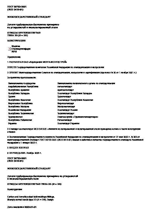 Наша цель состоит в том, чтобы предоставить вам быстрый доступ к содержанию документа Детали трубопроводов бесшовные приварные из углеродистой и низколегированной стали. Отводы крутоизогнутые типа 2D (R = DN). Конструкц.