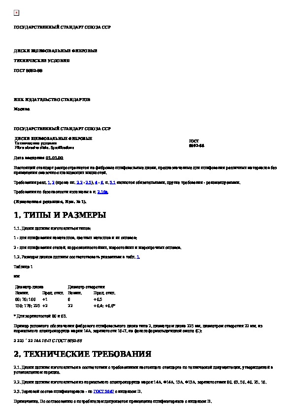 ГОСТ 8692-88: Диски шлифовальные фибровые. Технические условия