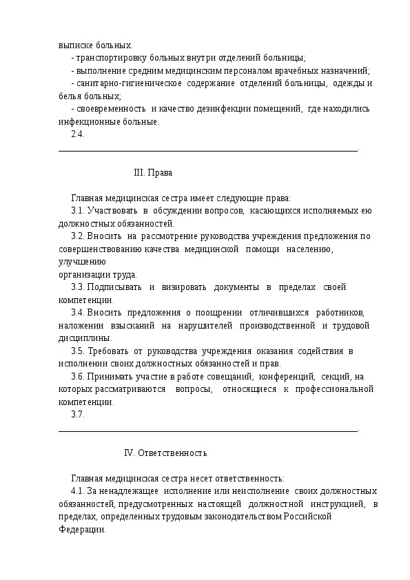 Должностная инструкция главной медицинской сестры. Страница № 4