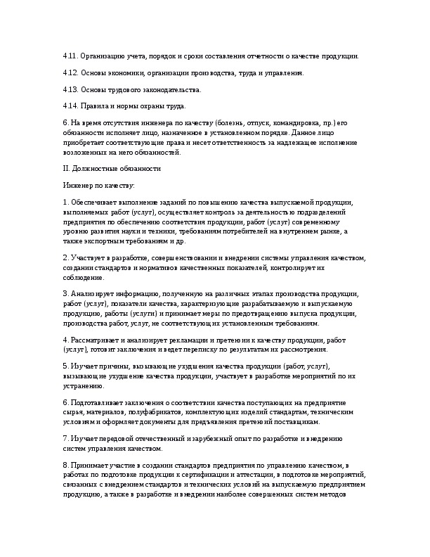 Вы можете использовать режим полноэкранного просмотра. Для просмотра должностных обязанностей инженера по качеству на полном экране, используйте кнопку «Открыть в Pdf-viewer».