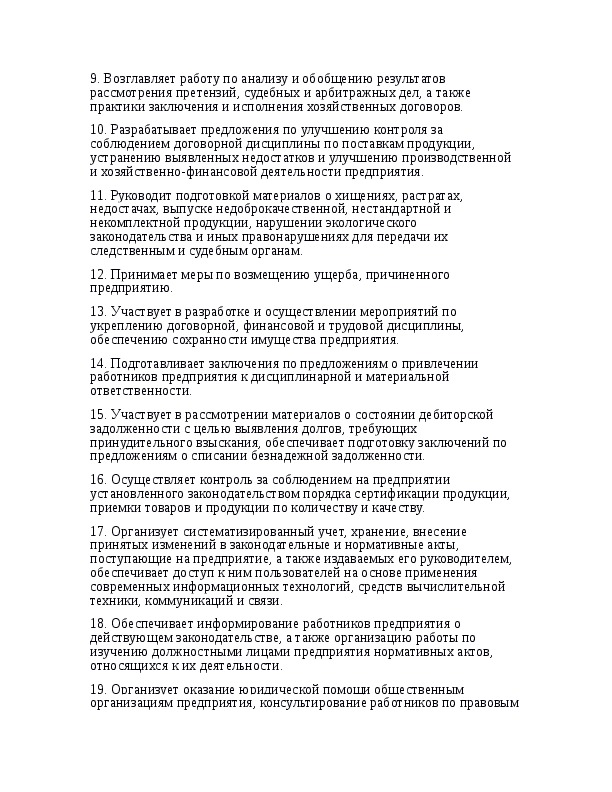 С помощью онлайн просмотра, Вы можете быстро просмотреть содержимое инструкции и ознакомиться с должностными обязанностями начальника юридического отдела.