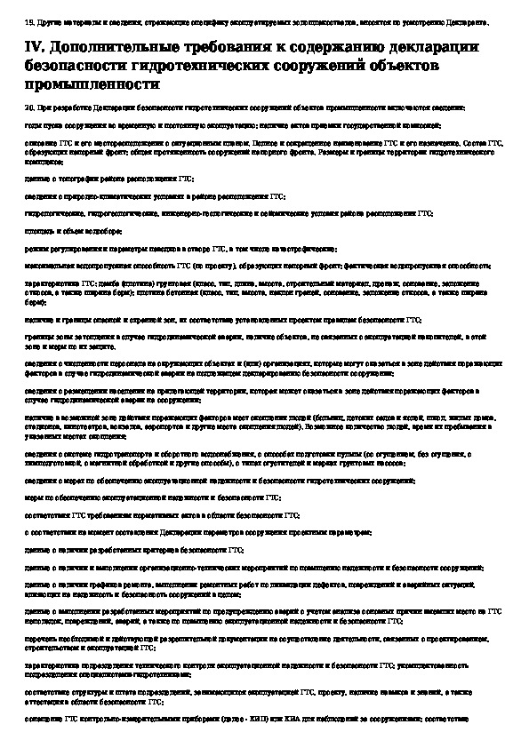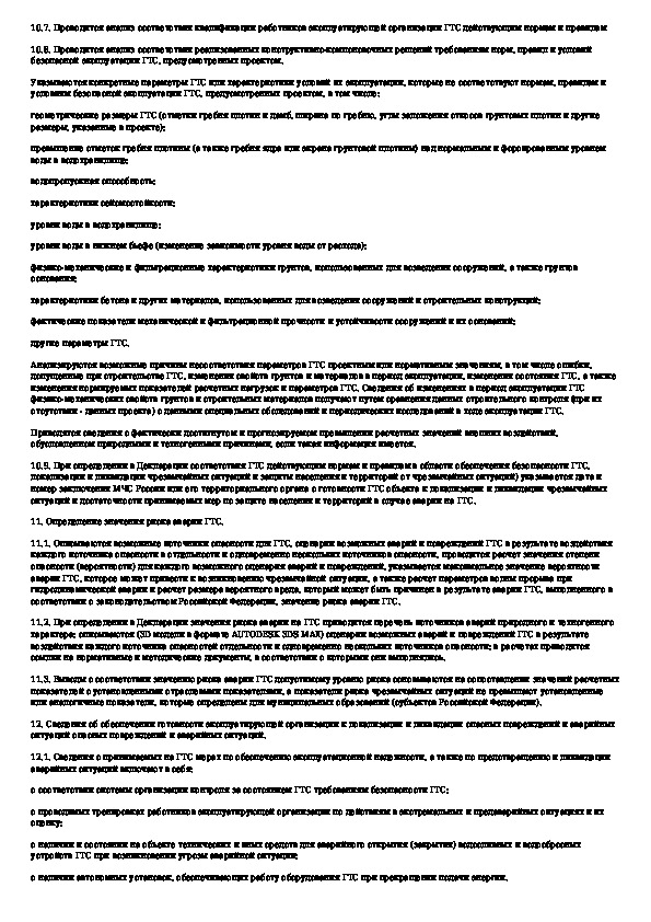 Дополнительные требования к содержанию деклараций безопасности гидротехнических сооружений и методика их составления, учитываю