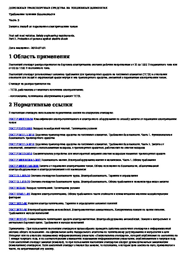 Наша цель состоит в том, чтобы предоставить вам быстрый доступ к содержанию документа Дорожные транспортные средства на топливных элементах. Требования техники безопасности. Часть 3. Защита людей от поражения электр.