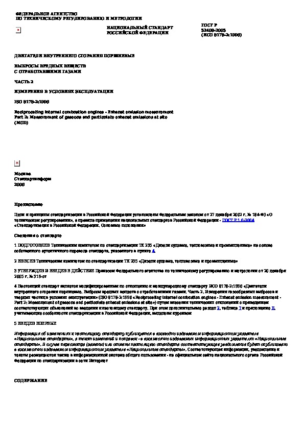 Наша цель состоит в том, чтобы предоставить вам быстрый доступ к содержанию документа Двигатели внутреннего сгорания поршневые. Выбросы вредных веществ с отработавшими газами. Часть 2. Измерения в условиях эксплуата.