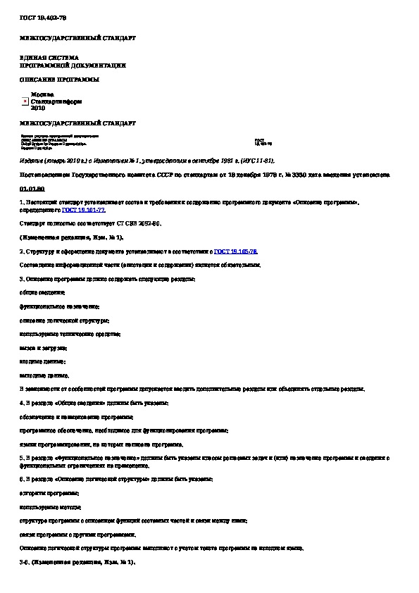ГОСТ 19.402-78: Единая система программной документации. Описание программы