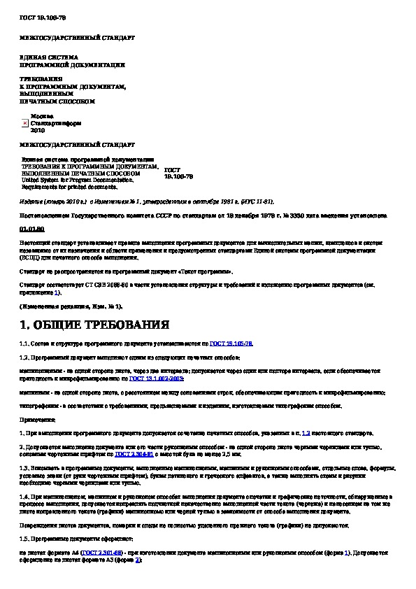 ГОСТ 19.106-78: Единая система программной документации. Требования к программным документам, выполненным печатным способом