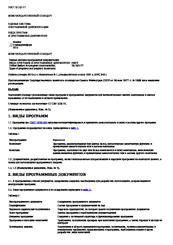 ГОСТ 19.101-77: Единая система программной документации. Виды программ и программных документов
