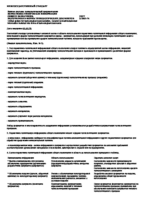 ГОСТ 3.1901-74: Единая система технологической документации. Нормативно-техническая информация общего назначения, включаемая в формы технологич