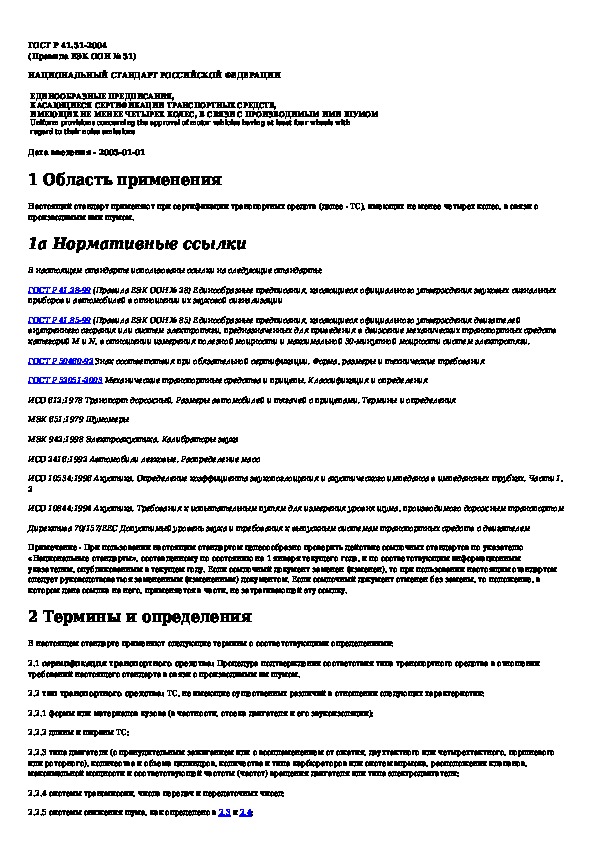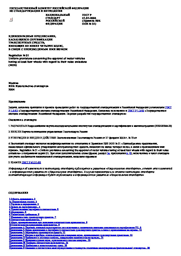 ГОСТ Р 41.51-2004: Единообразные предписания, касающиеся сертификации транспортных средств, имеющих не менее четырех колес, в связи с производимым и