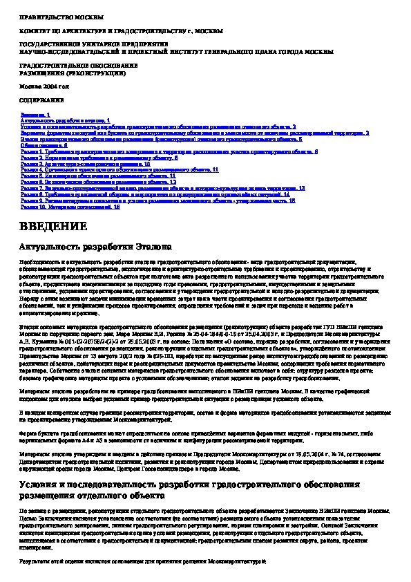 Наша цель состоит в том, чтобы предоставить вам быстрый доступ к содержанию документа Эталон градостроительного обоснования размещения (реконструкции) отдельного градостроительного объекта.