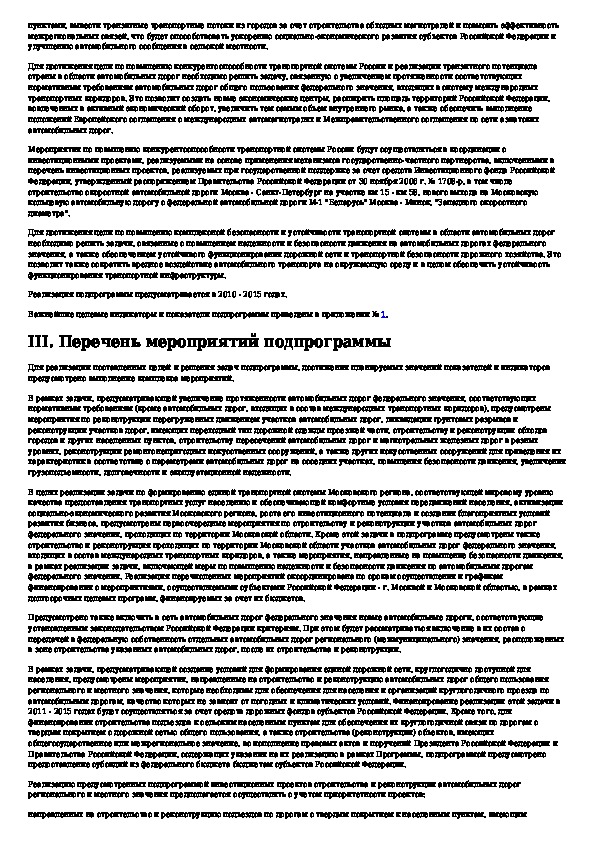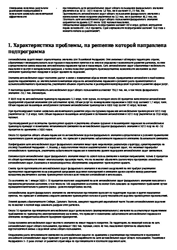 Наша цель состоит в том, чтобы предоставить вам быстрый доступ к содержанию документа Федеральная целевая программа "Развитие транспортной системы России (2010 - 2020 годы)". Подпрограмма "Автомобильные дороги".