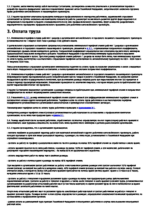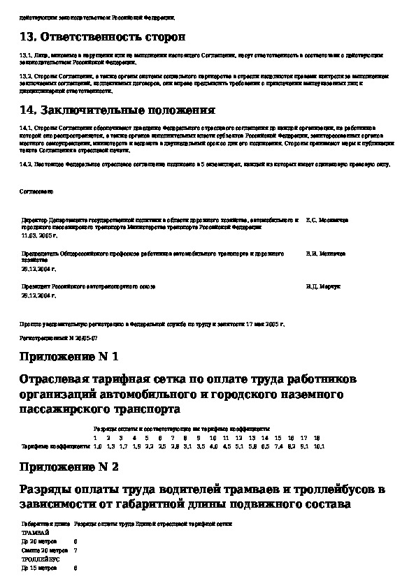 Федеральное отраслевое соглашение по автомобильному и городскому наземному пассажирскому транспорту на 2005 – 2007 годы