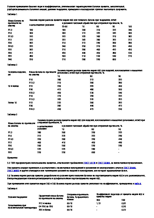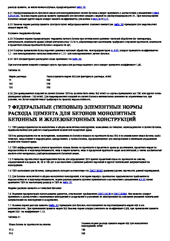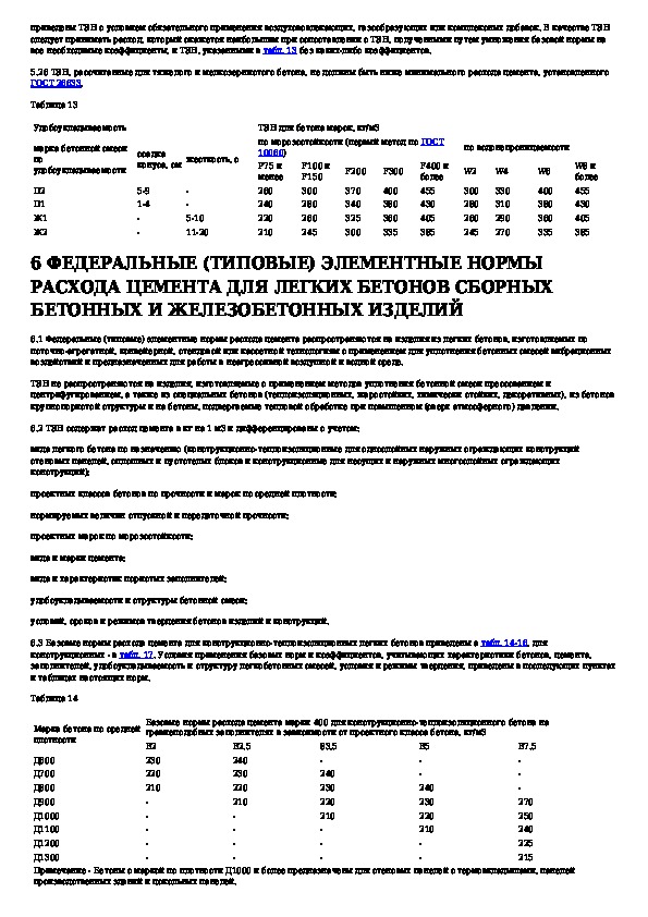 Федеральные (типовые) элементные нормы расхода цемента при изготовлении бетонных и железобетонных изделий и конструкций