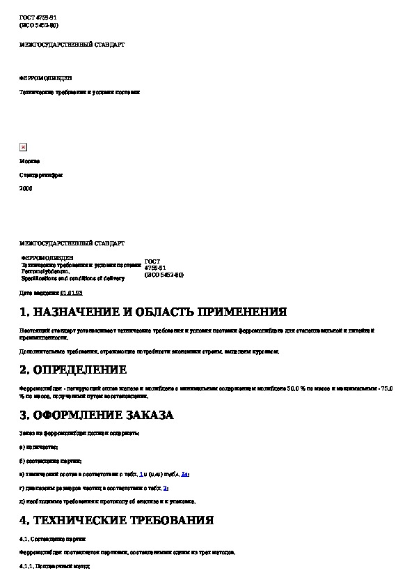 ГОСТ 4759-91: Ферромолибден. Технические требования и условия поставки