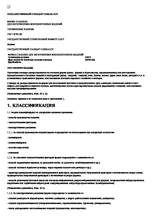 ГОСТ 25781-83: Формы стальные для изготовления железобетонных изделий. Технические условия