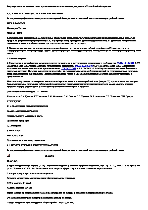 Обозначение: МУК 4.1.0.378-96