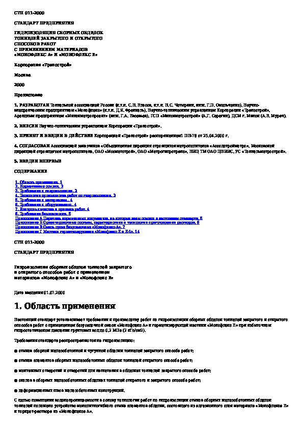 Наша цель состоит в том, чтобы предоставить вам быстрый доступ к содержанию документа Гидроизоляция сборных обделок тоннелей закрытого и открытого способов работ с применением материалов "Монофлекс А" и "Монофлекс Е".