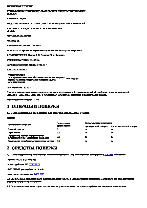 Наша цель состоит в том, чтобы предоставить вам быстрый доступ к содержанию документа Государственная система обеспечения единства измерений. Анализатор жидкости флуориметрический "ЭЛАЗ". Методика поверки.