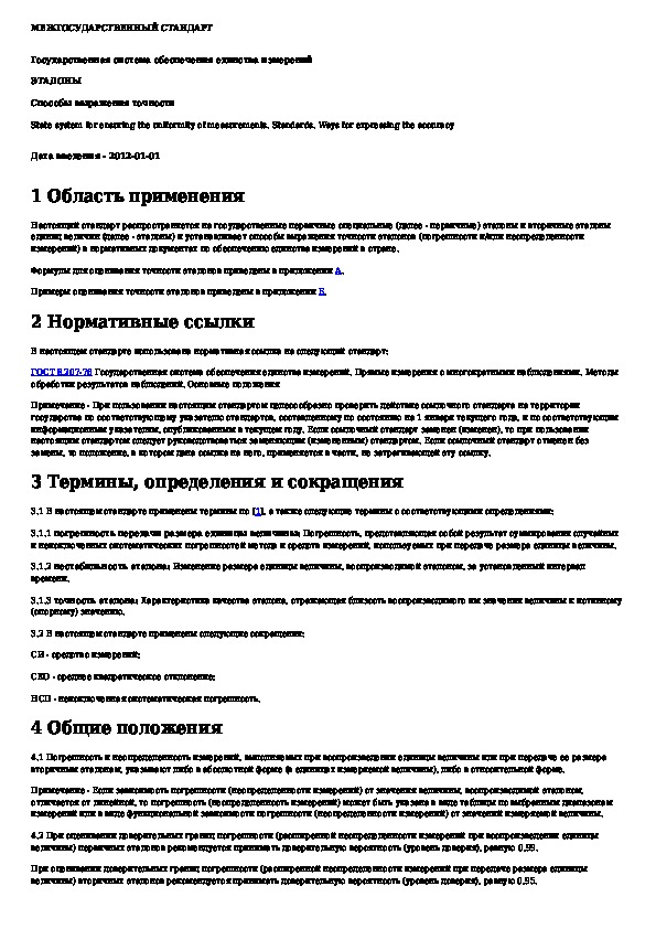 Наша цель состоит в том, чтобы предоставить вам быстрый доступ к содержанию документа Государственная система обеспечения единства измерений. Эталоны. Способы выражения точности.
