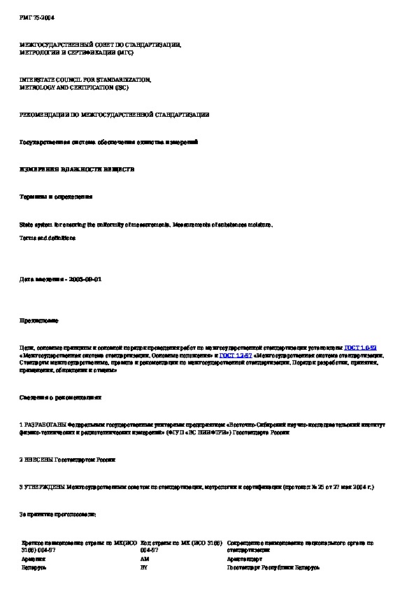 РМГ 75-2004: Государственная система обеспечения единства измерений. Измерение влажности веществ. Термины и определения