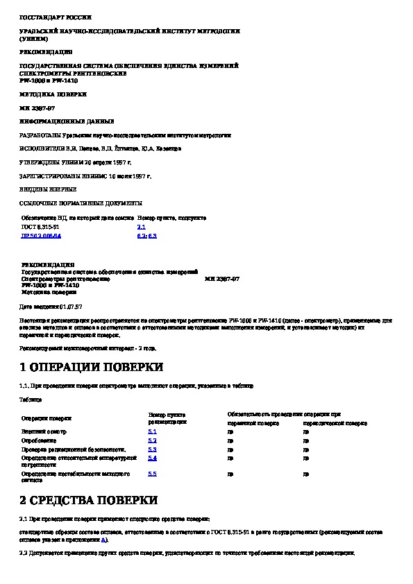 Наша цель состоит в том, чтобы предоставить вам быстрый доступ к содержанию документа Государственная система обеспечения единства измерений. Спектрометры рентгеновские PW-1606 и PW-1410. Методика поверки.