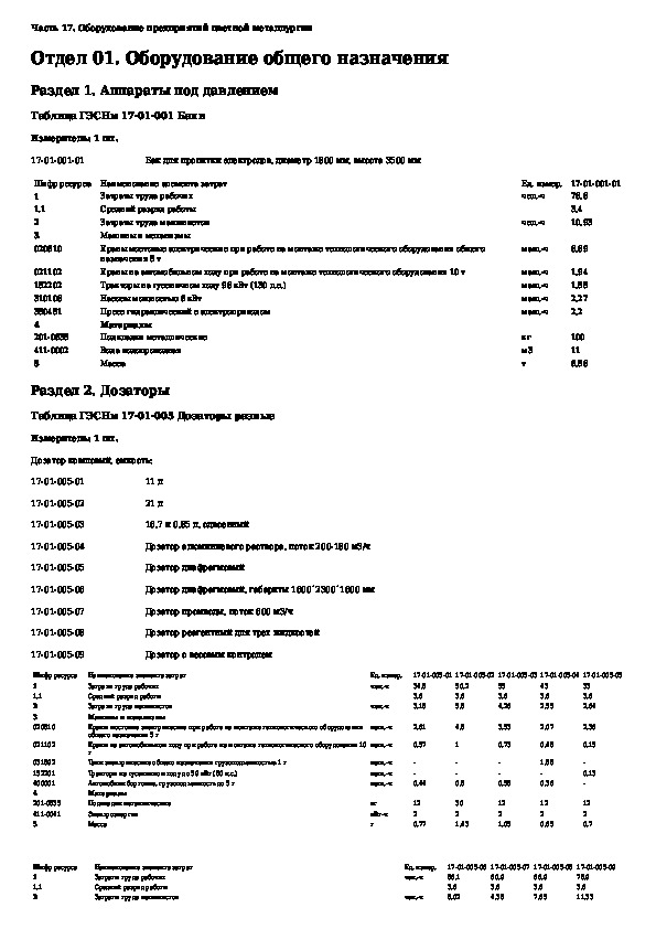 ГЭСНм 81-03-17-2001: Государственные элементные сметные нормы на монтаж оборудования. Часть 17. Оборудование предприятий цветной металлургии (редакция