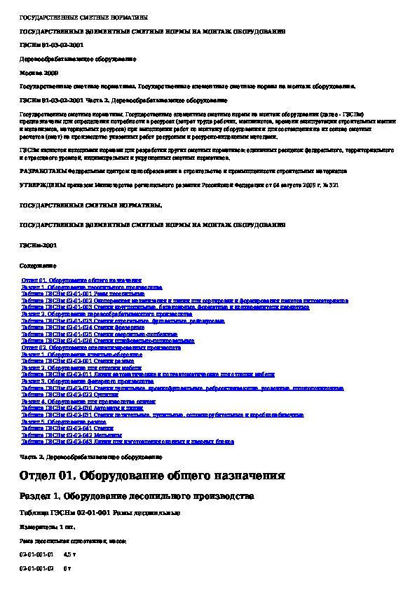 Наша цель состоит в том, чтобы предоставить вам быстрый доступ к содержанию документа Государственные элементные сметные нормы на монтаж оборудования. Часть 2. Деревообрабатывающее оборудование (редакция 2009 г.).