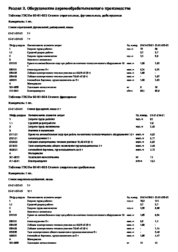 Государственные элементные сметные нормы на монтаж оборудования. Часть 2. Деревообрабатывающее оборудование (редакция 2009 г.)