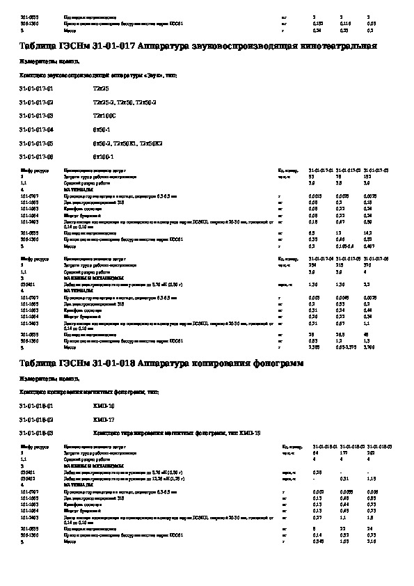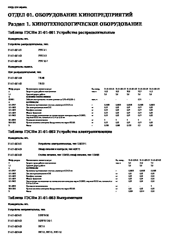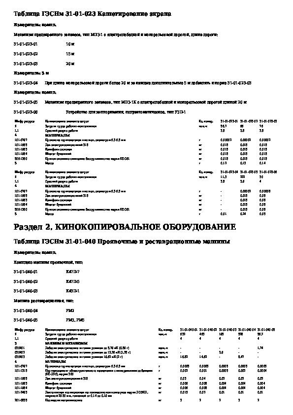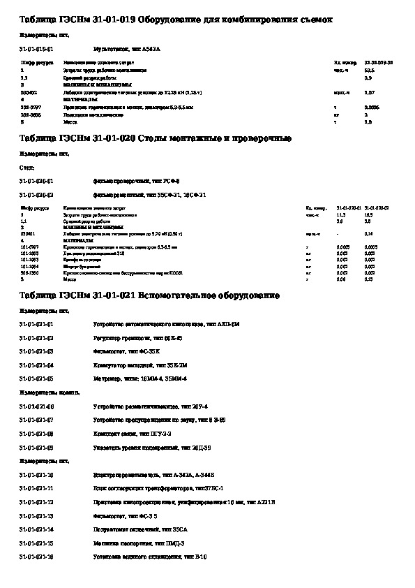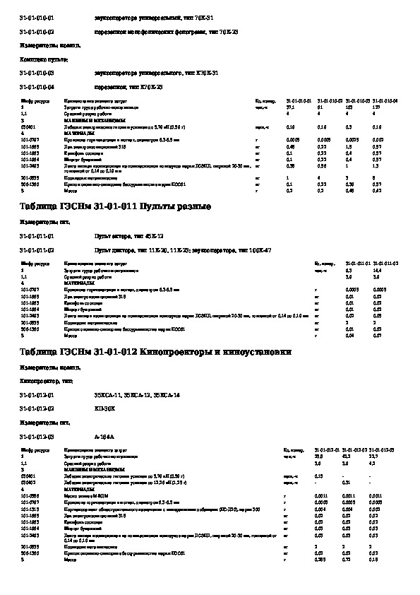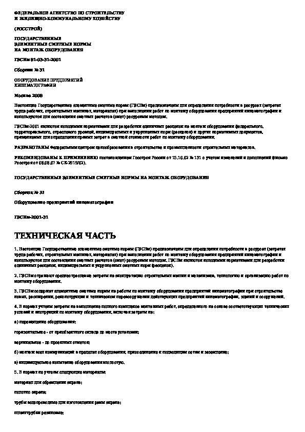 ГЭСНм 81-03-31-2001: Государственные элементные сметные нормы на монтаж оборудования. Сборник 31. Оборудование предприятий кинематографии (издание 2008