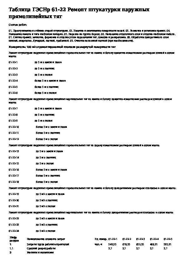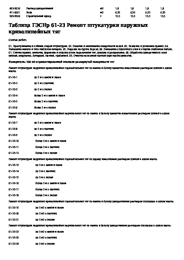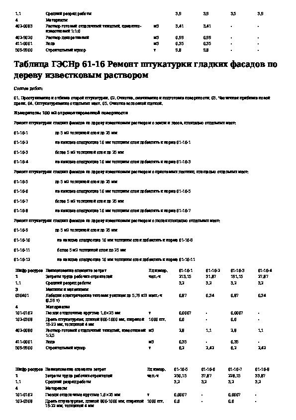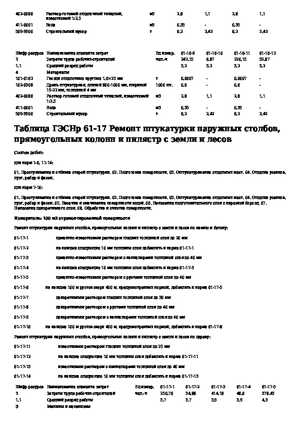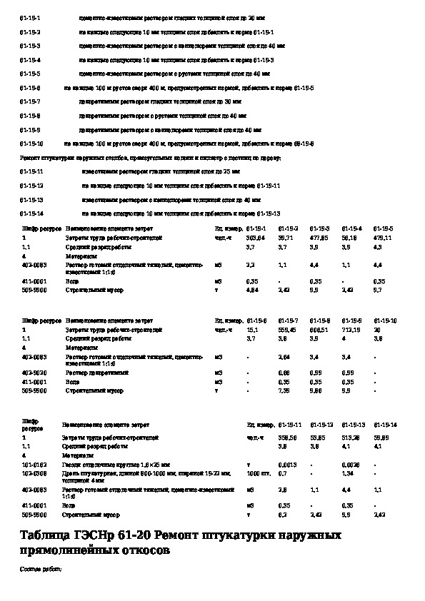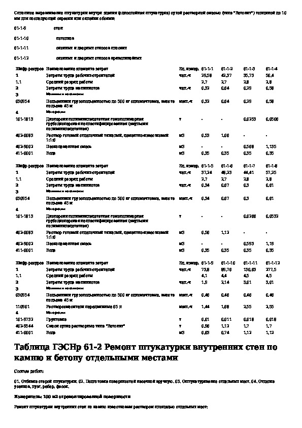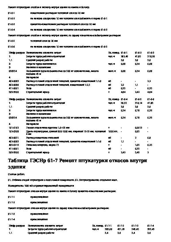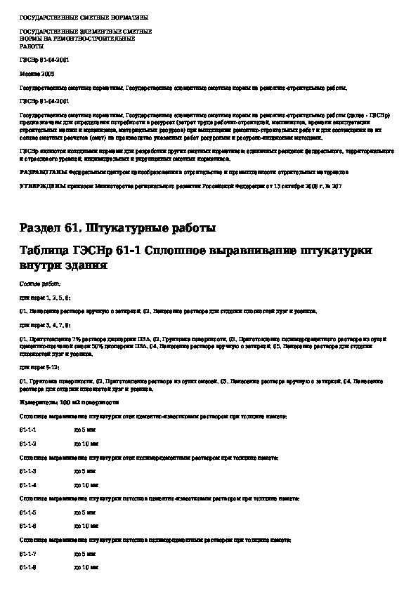 Государственные элементные сметные нормы на ремонтно-строительные работы. Раздел 61. Штукатурные работы (редакция 2009 г.)
