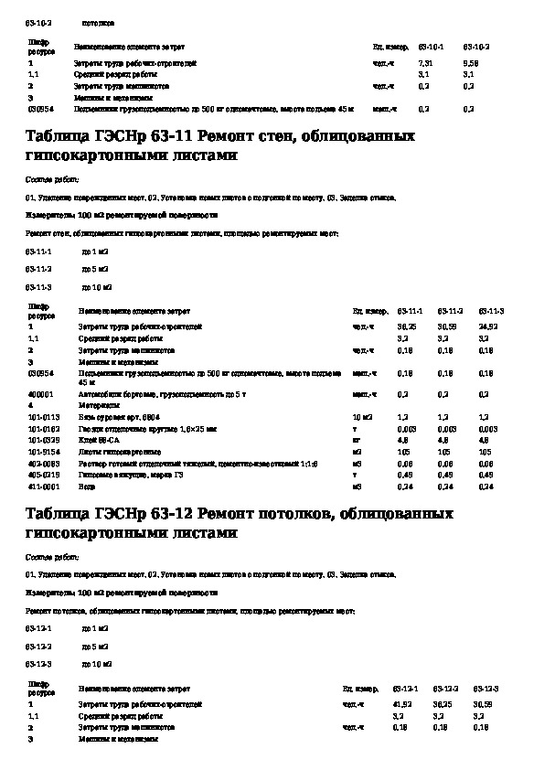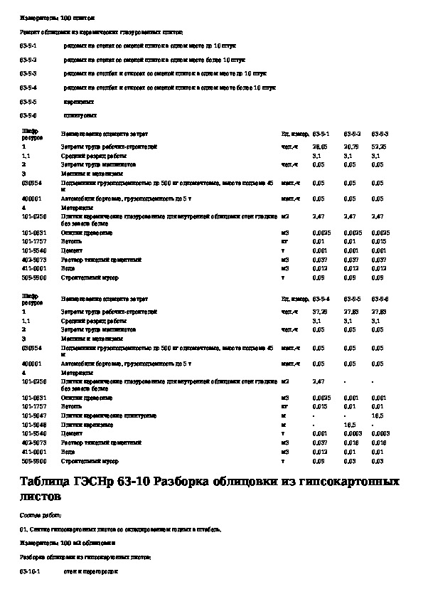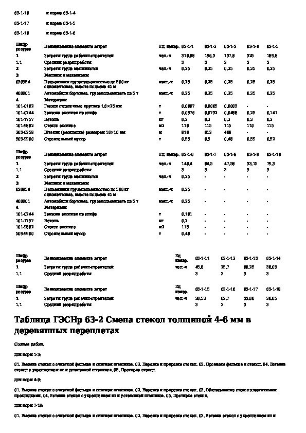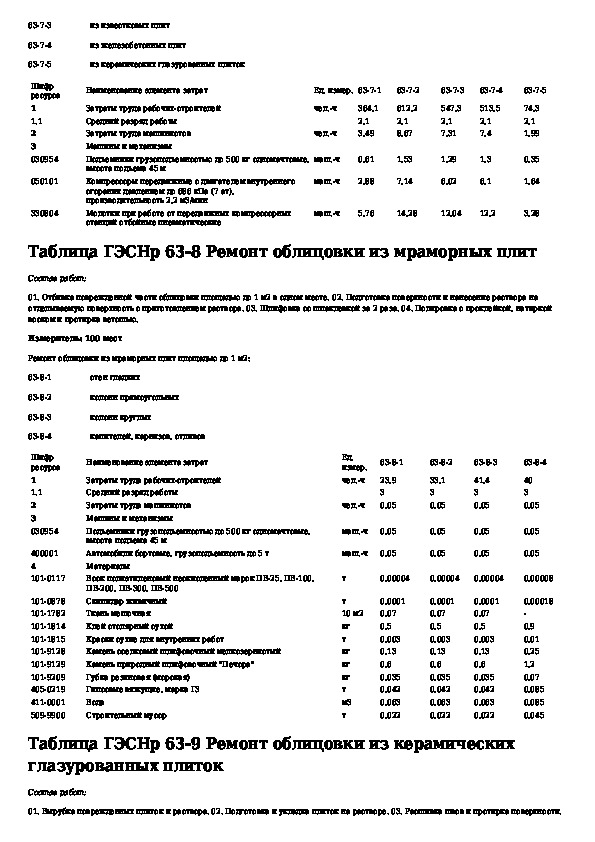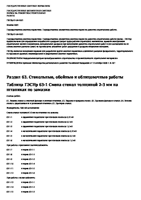 ГЭСНр 81-04-63-2001: Государственные элементные сметные нормы на ремонтно-строительные работы. Раздел 63. Стекольные, обойные и облицовочные работы (ре