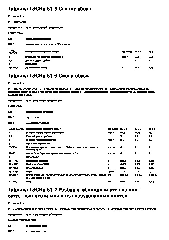 Государственные элементные сметные нормы на ремонтно-строительные работы. Раздел 63. Стекольные, обойные и облицовочные работы (ре
