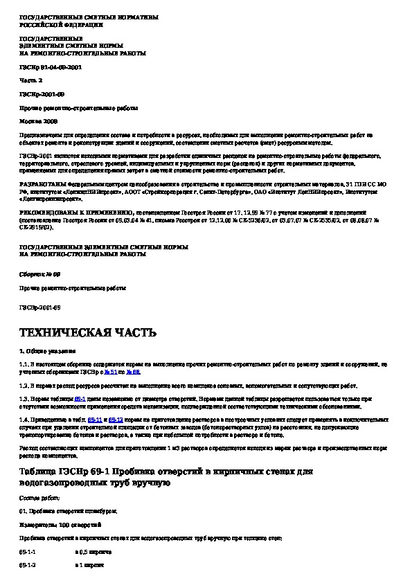 Государственные элементные сметные нормы на ремонтно-строительные работы. Сборник 69. Прочие ремонтно-строительные работы (издани