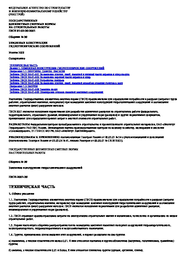 Государственные элементные сметные нормы на строительные работы. Сборник 36. Земляные конструкции гидротехнических сооружений (из