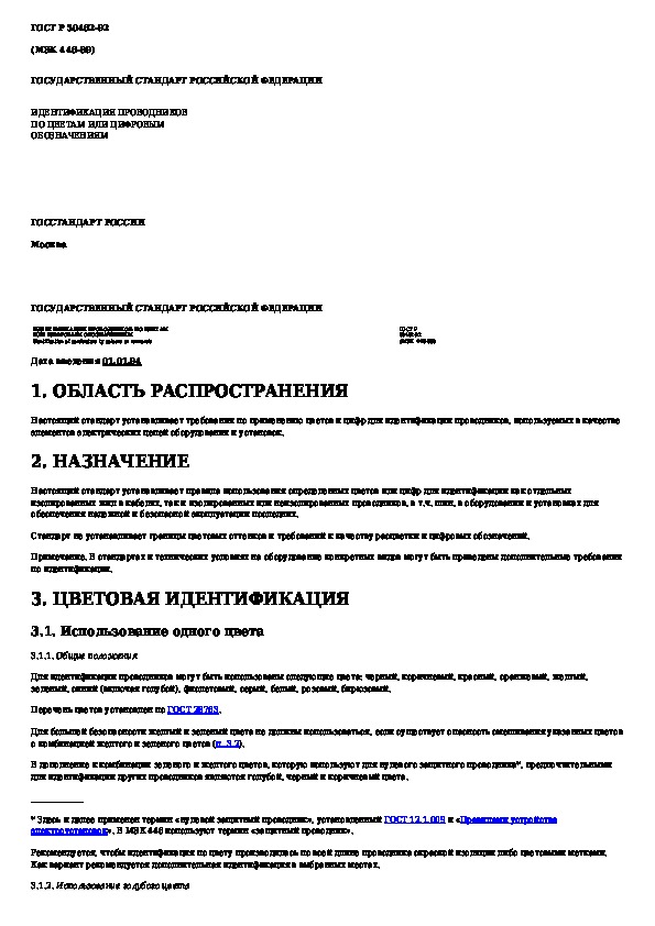 ГОСТ Р 50462-92: Идентификация проводников по цветам или цифровым обозначениям