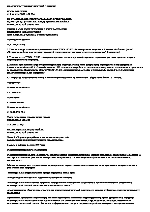 ТСН 301-97-ЯО: Индивидуальная застройка в Ярославской области. Часть I. Порядок разработки и согласования проектной документации для индивидуал