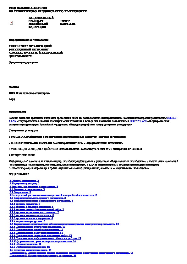 ГОСТ Р 52294-2004: Информационная технология. Управление организацией. Электронный регламент административной и служебной деятельности. Основные п