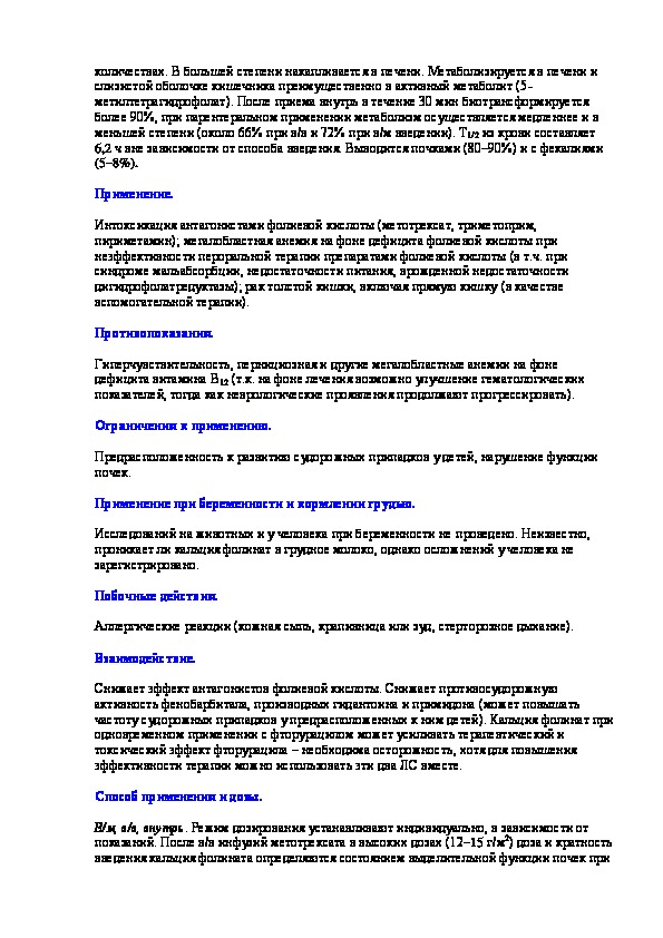 Инструкция по применению лекарственного препарата Лейковорин-Тева