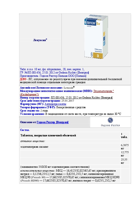 Перед Вами Инструкция по применению лекарственного препарата Ленуксин. Вы можете ознакомиться и скачать данную инструкцию по применению бесплатно. В инструкции таблеток и лекарственных препаратов описан способ и особенности применения, а также противопоказания и аналог препарата. Инструкция производителя на русском языке позволяет правильно принимать таблетки и другие лекарства.