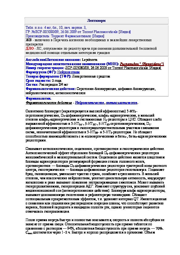 Перед Вами Инструкция по применению лекарственного препарата Лептинорм. Вы можете ознакомиться и скачать данную