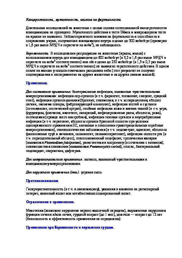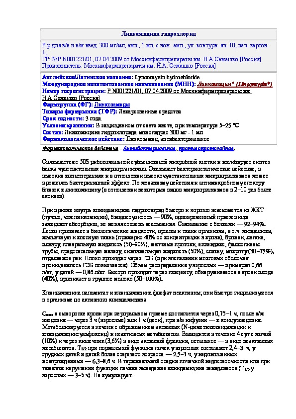 Смотрите также другие инструкции из раздела Линкомицина гидрохлорид